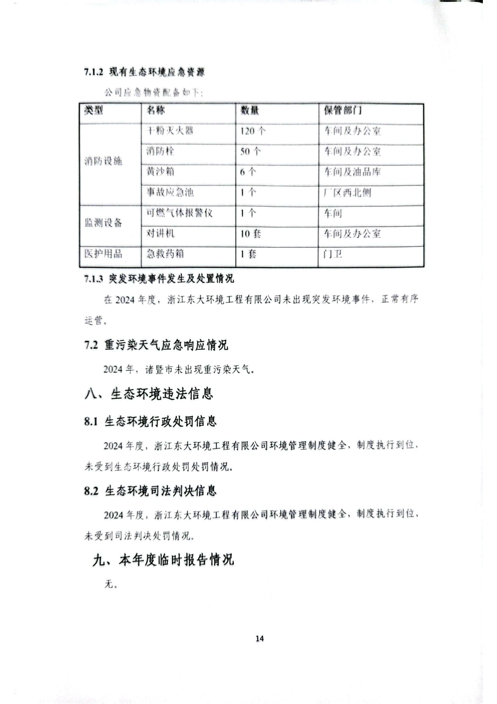浙江東大環境工程有限公司 2024 年度環境信息依法披露報告
