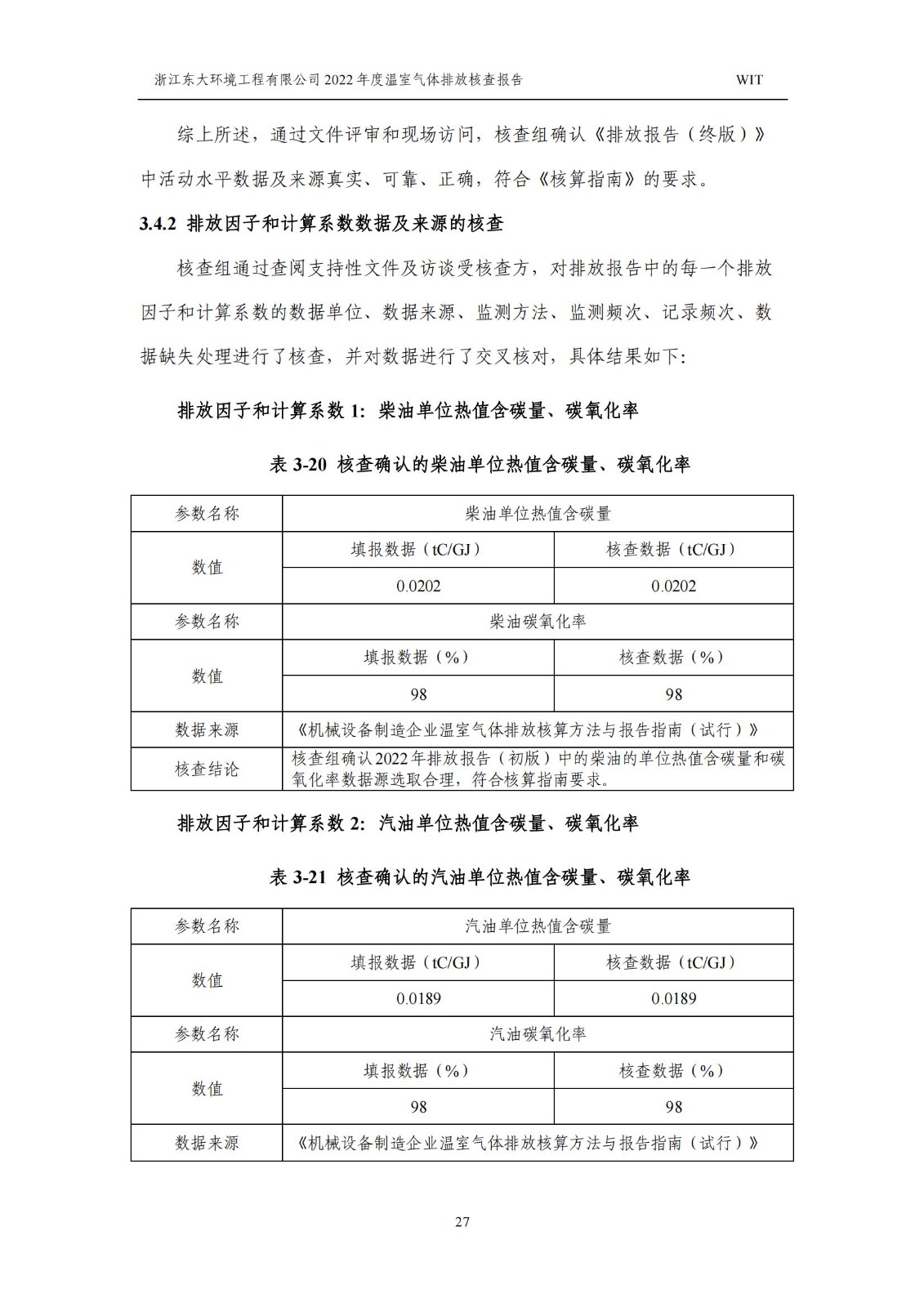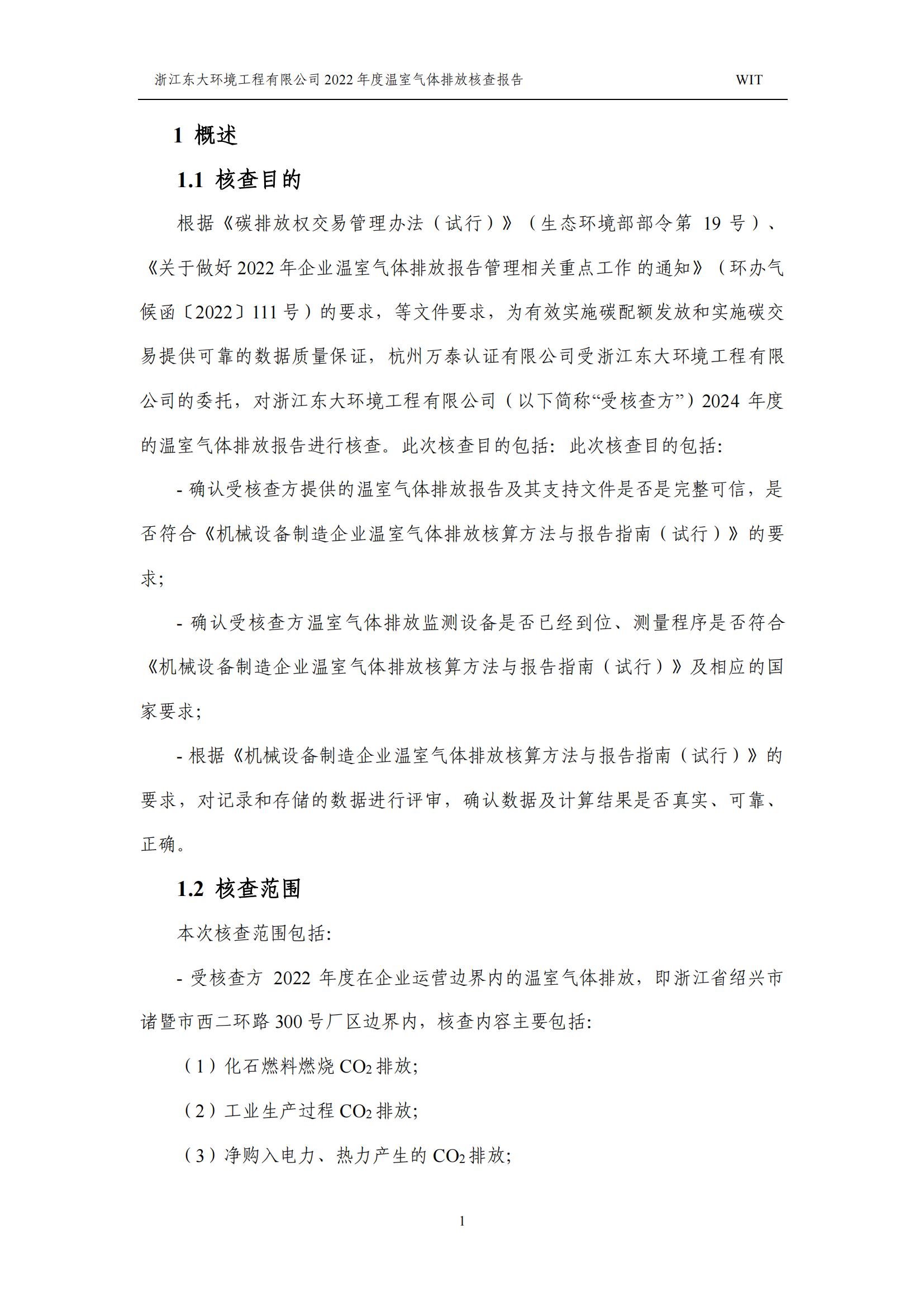 浙江東大環境工程有限公司2022年溫室氣體排放核查報告